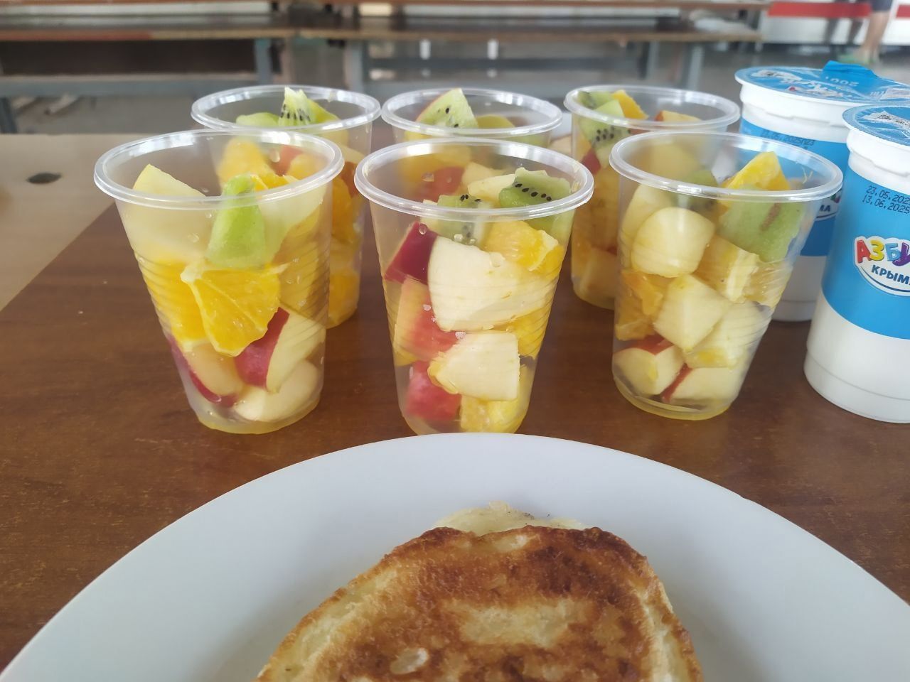 Доброе утро начинается с бодрости! Сегодня наши ребята зарядились отличным настроением на веселой зарядке, а после подкрепились свежими фруктами и румяными оладьями с повидлом – вкусно и полезно!