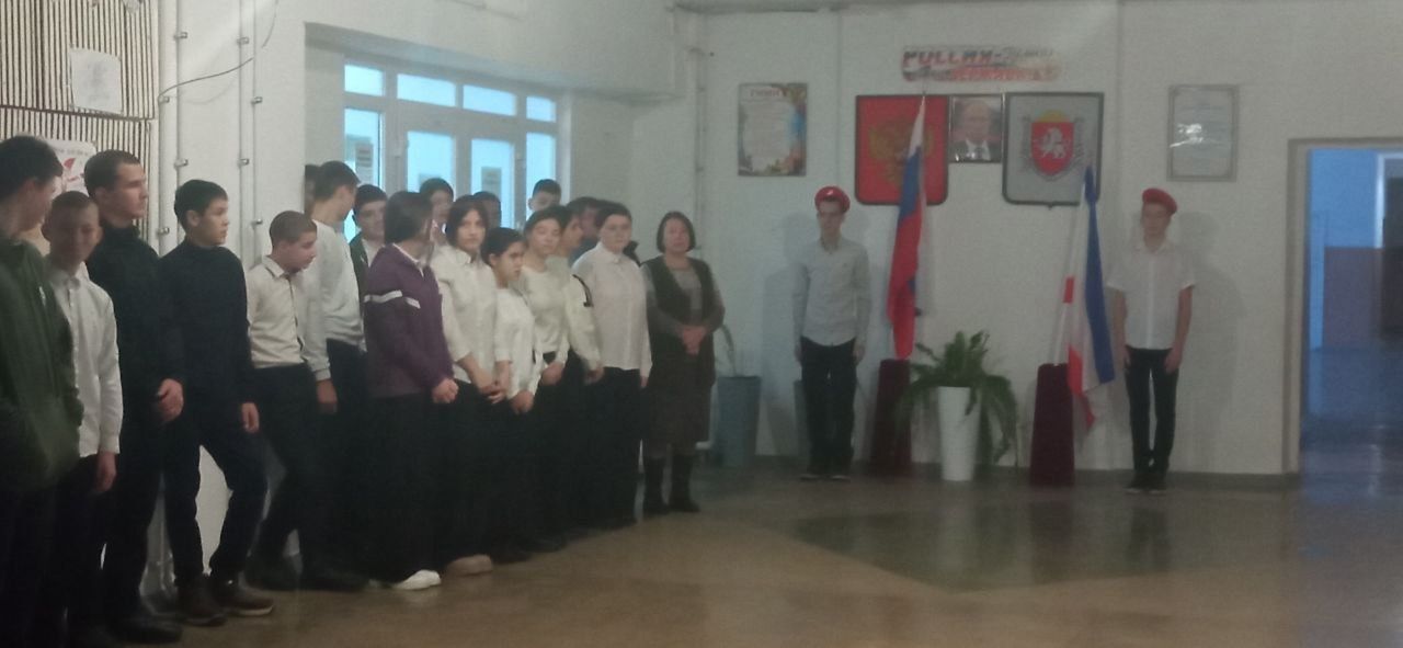 13 января в МБОУ «Грушевская СОШ им. А. В. Удовенко» городского округа Судак состоялась еженедельная линейка посвящённая выносу Государственных флагов Российской Федерации и Республики Крым.